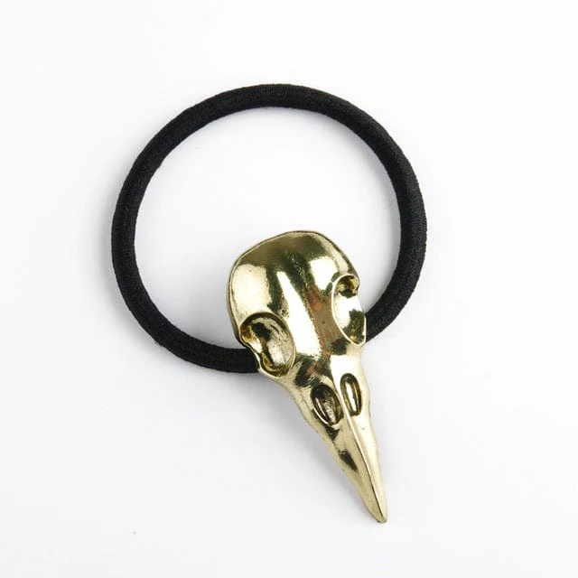 Élastique à cheveux ornée d'un crâne de corbeau.